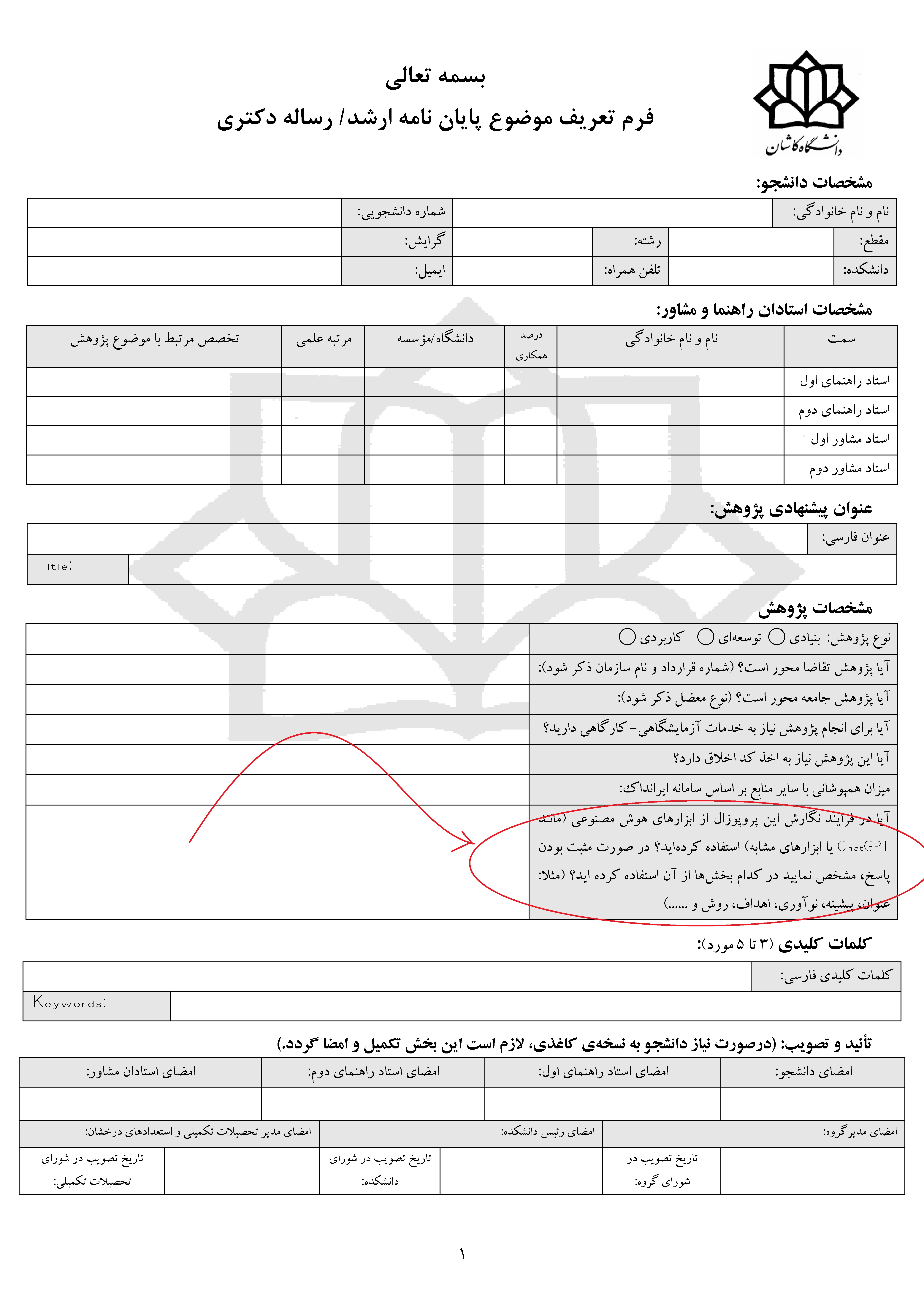 فرمت پرپوزال ارشد و دکترا یک تغییر کوچک کرده است و از مهر 1404 باید این فرم را تکمیل کرد ۱۳ آبان ۱۴۰۴ | ۰۸:۱۶ کد : ۲۶۵۰۹ آخرین اخبار ارسال به دیگران نام شما ایمیل شما ایمیل دریافتکننده ارسال انصراف تعداد بازدید:۱۶
